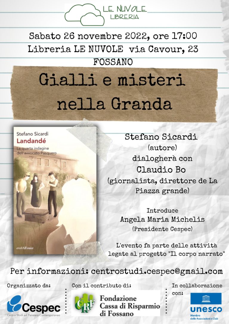 L’evento fa parte delle attività legate al progetto “Il corpo narrato” ed è organizzato dal Cespec con il contributo della Fondazione Cassa di Risparmio di Fossano ed in collaborazine con il Club Unesco.