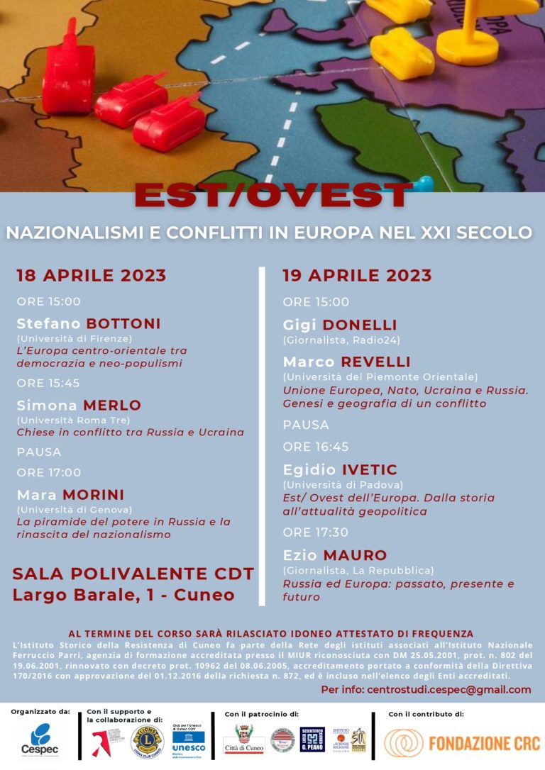 Quest’anno il workshop, dal titolo “Nazionalismi e conflitti in Europa nel XXI secolo”, si svolgerà a Cuneo, presso la Sala CDT, in due sessioni pomeridiane, martedì 18 e mercoledì 19 aprile 2023 dalle ore 15 alle 18,30.