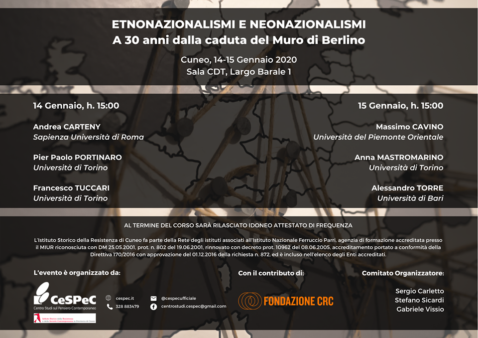 Il Centro Studi, in collaborazione con l'Istituto Storico della Resistenza e della Società Contemporanea in provincia di Cuneo (ISRCNP) e con l'Università di Torino sede di Savigliano, promuove un Workshop di approfondimento sul tema “Etno-nazionalismi e neonazionalismi in Europa trent’anni dopo la caduta del muro di Berlino". ​In continuità con l’edizione precedente, dedicata al tema…